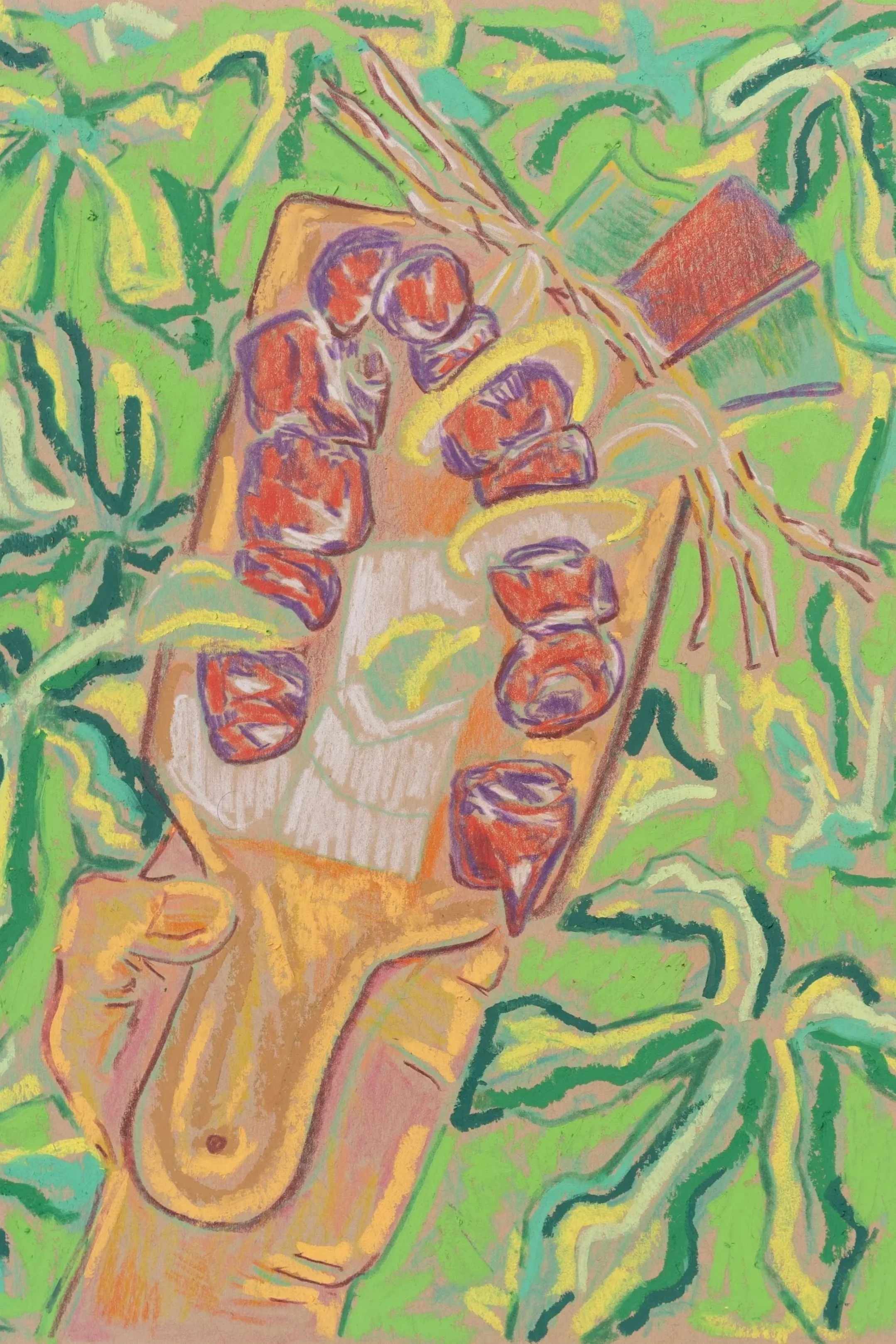 Oil Pastel, acrylic, and ink on paper