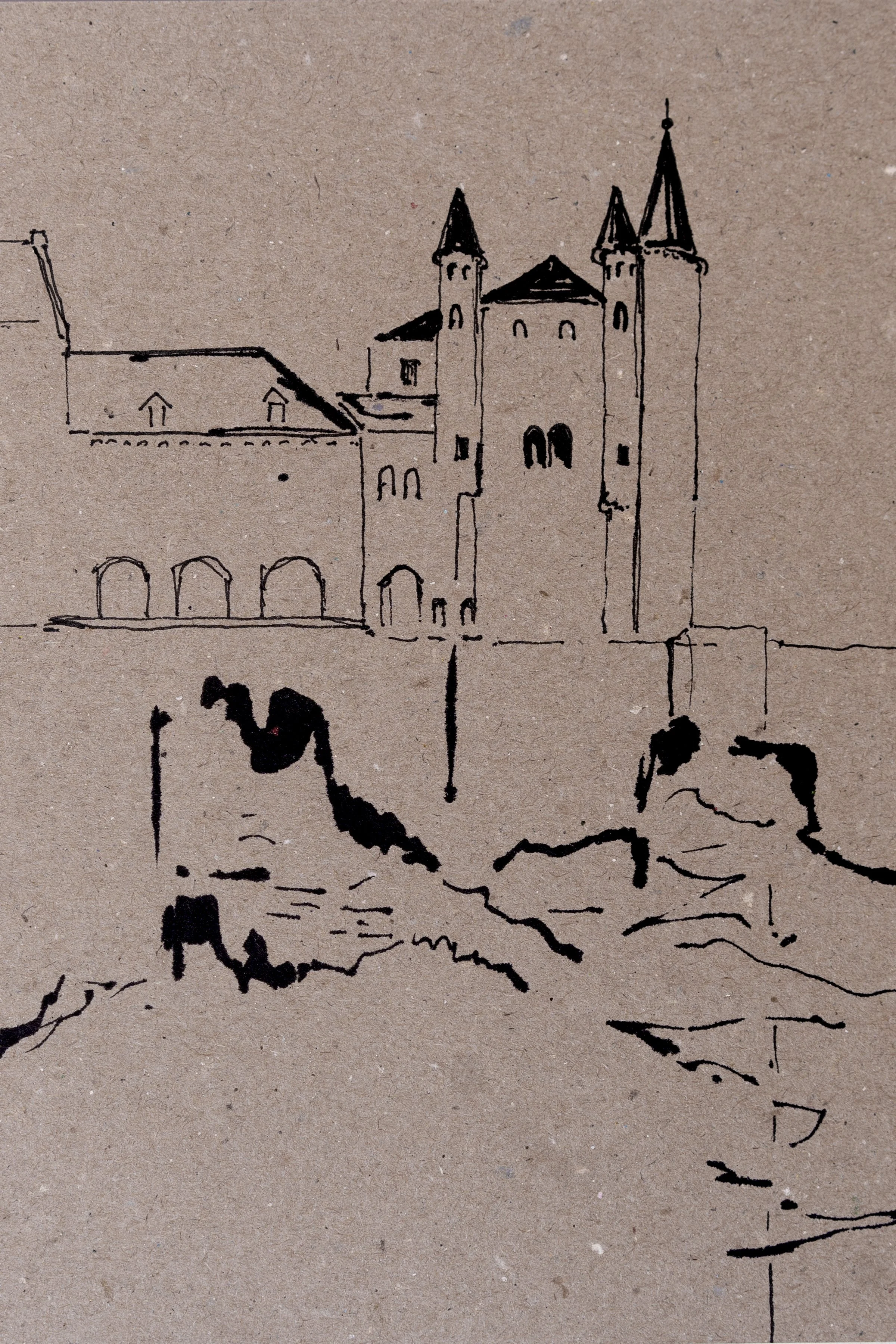 Observation sketches with parallel pen on recycled paper.